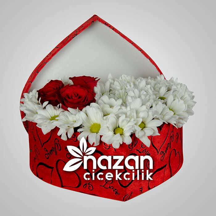 Kalp Kutuda Kır Çiçekleri ve Kırmızı Güller