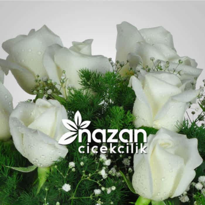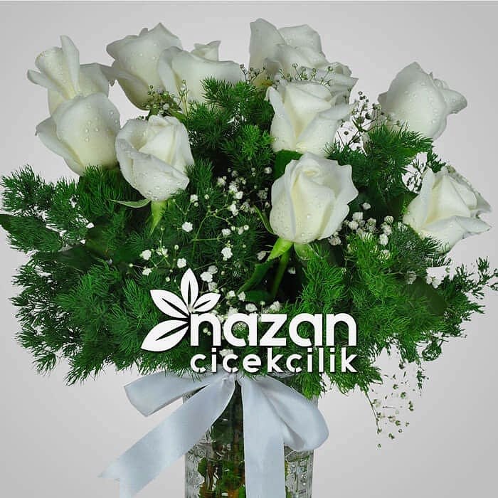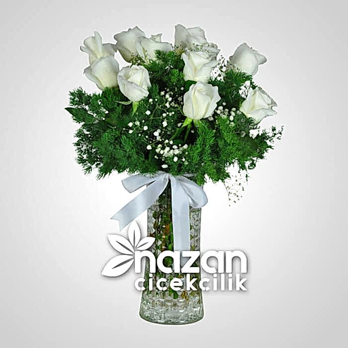 Şeffaf Silindir Vazoda 11’Li Beyaz Gül