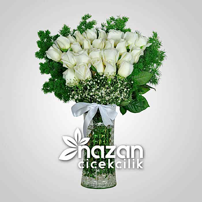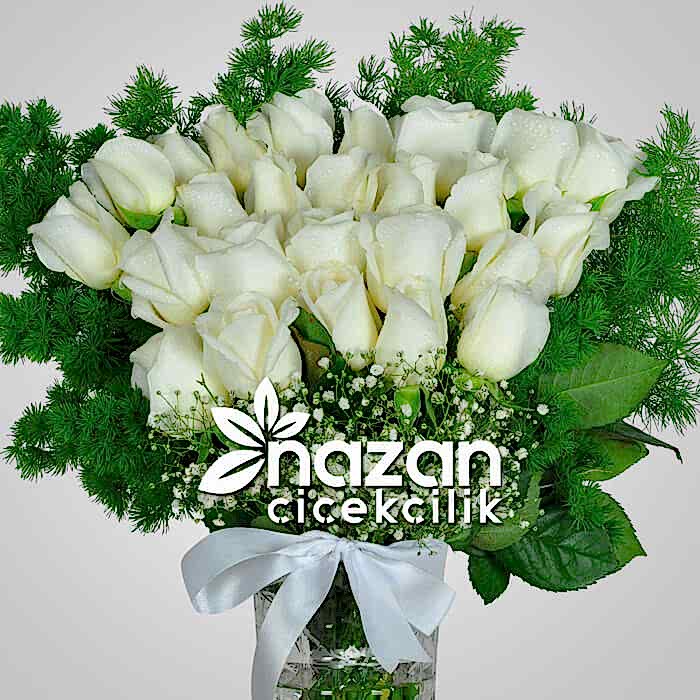 Şeffaf Silindir Vazoda 25’Li Beyaz Gül
