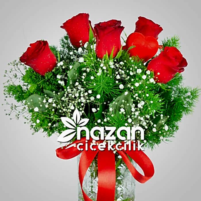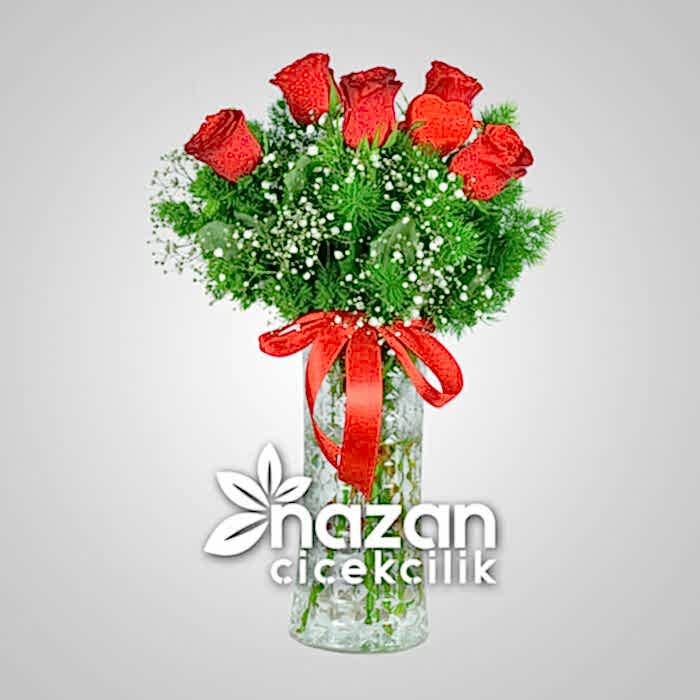 Şeffaf Silindir Vazoda 5’Li Kırmızı Gül