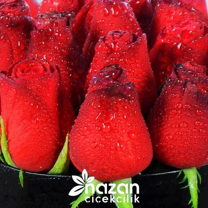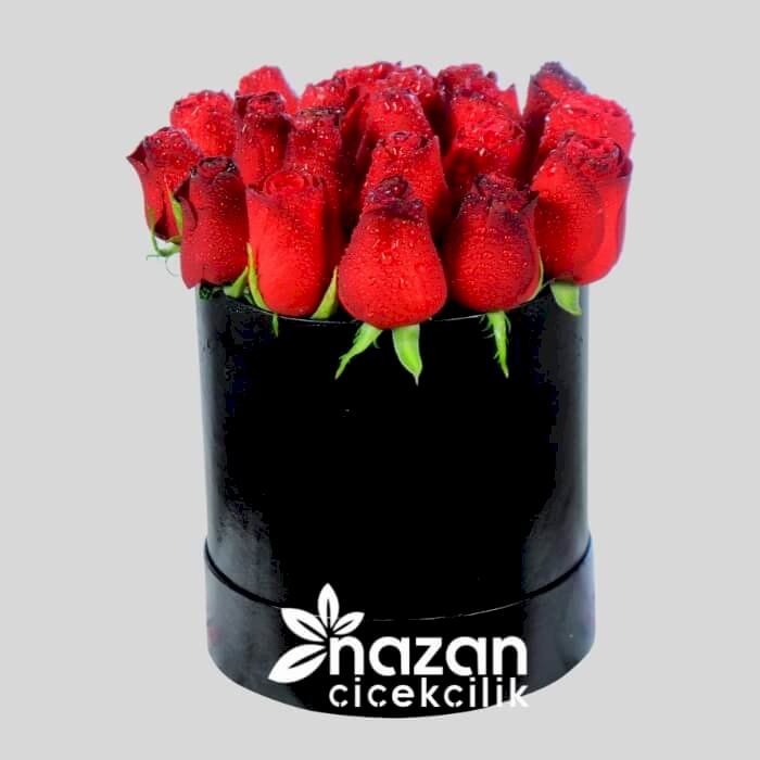 Siyah kutu içerisine 20 adet kırmızı gül kullanılarak hazırlanmış şık bir aranjman